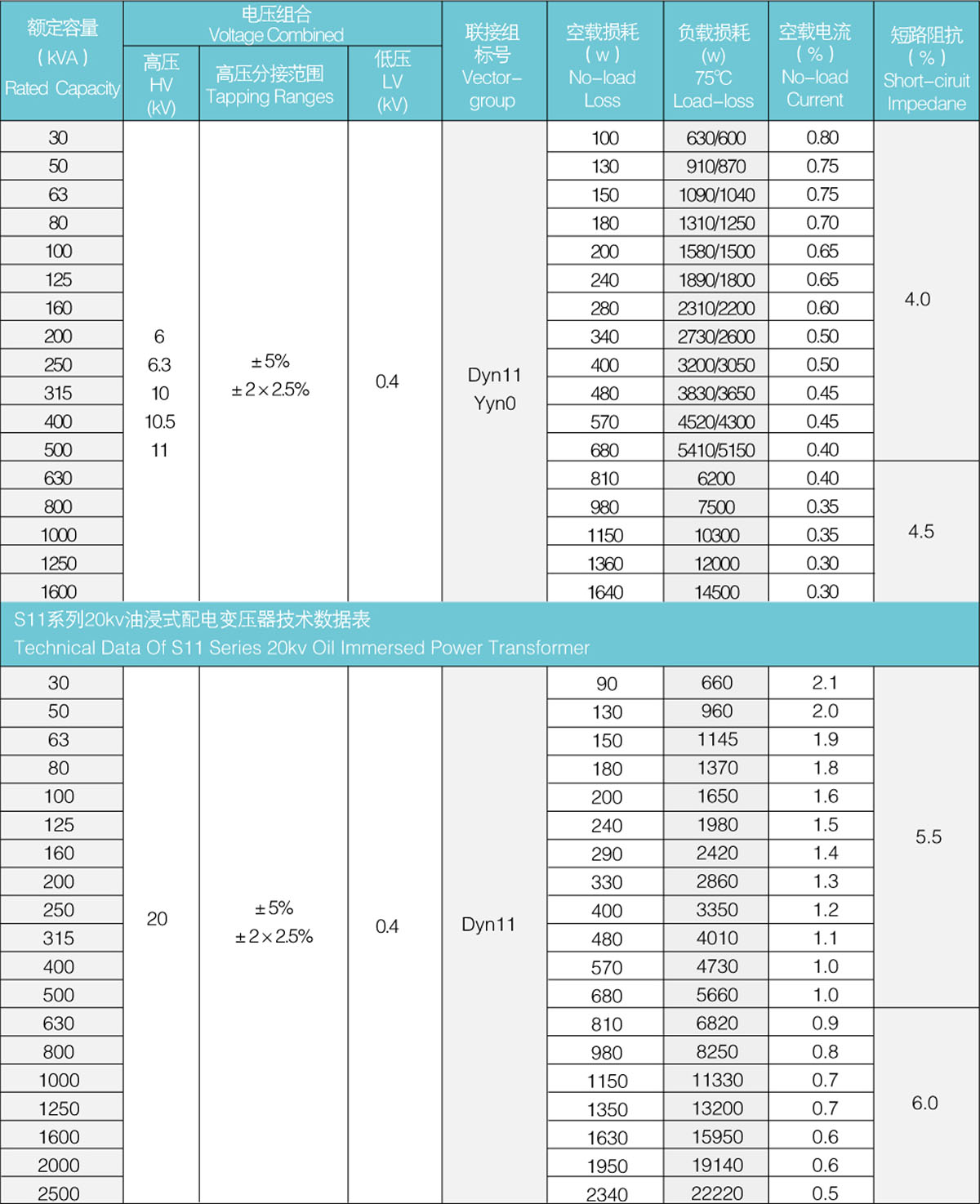 該產(chǎn)品執(zhí)行國(guó)家標(biāo)準(zhǔn)GB1094-1996《電力變壓器》和GB/T6451-2008 《三相油浸式電力變壓器技術(shù)參數(shù)和要求》。S11系列變壓器是新系列低損耗銅繞組產(chǎn)品,該產(chǎn)品采用優(yōu)良材料,在線圈器身和絕緣方面,運(yùn)用新工藝、新材料、從而使空載、負(fù)載損耗明顯降低,性能和結(jié)構(gòu)可靠和優(yōu)良。